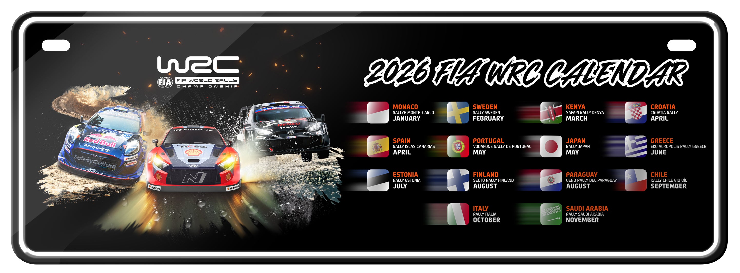 WRC 2026 Calendar Number Plate